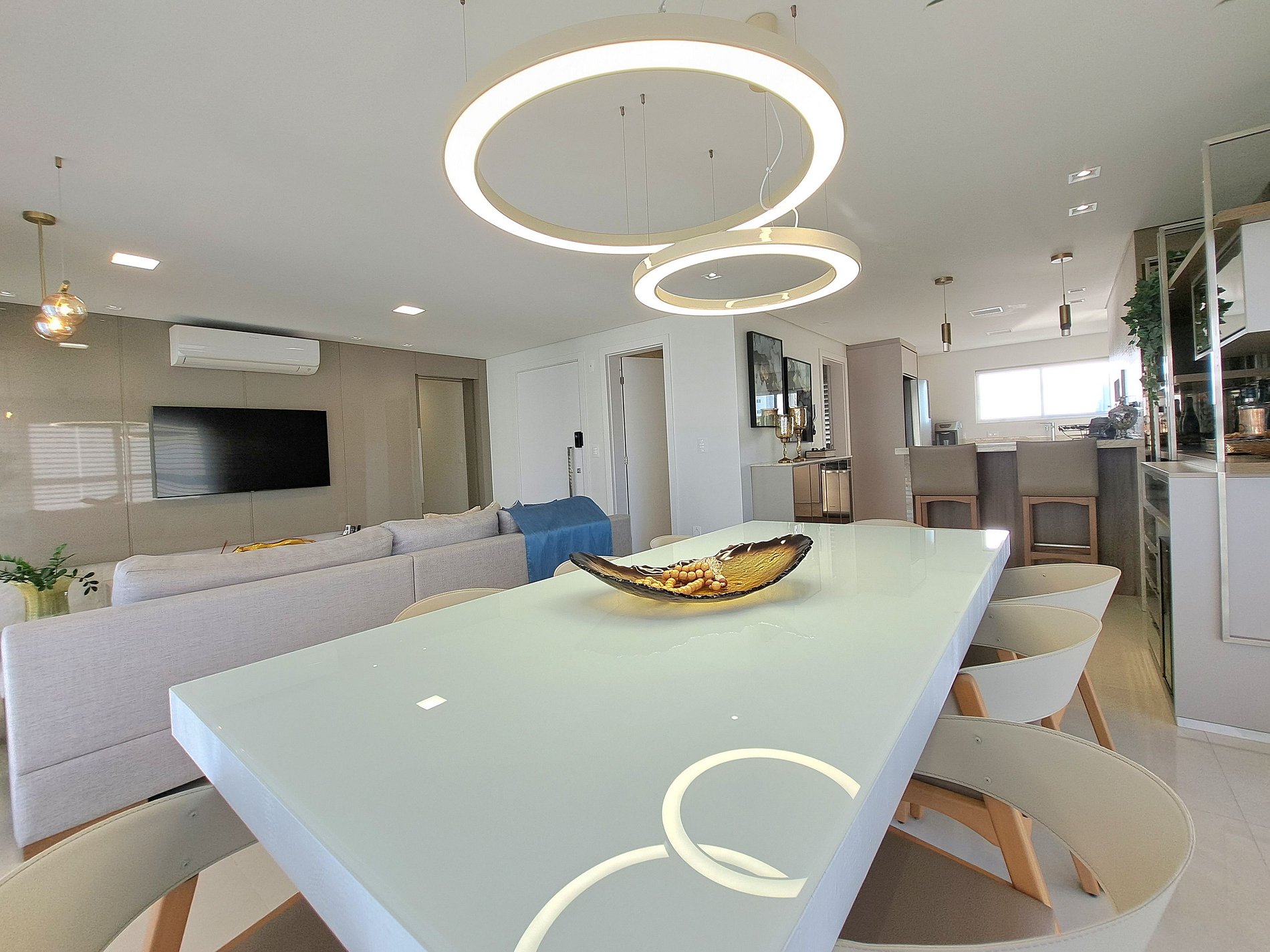 Cozinha toda equipada, integrada à espaçosa sala de jantar e estar com vista deslumbrante. Suas refeições serão momentos incríveis!