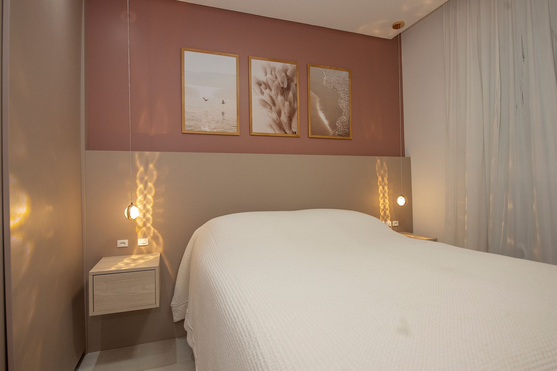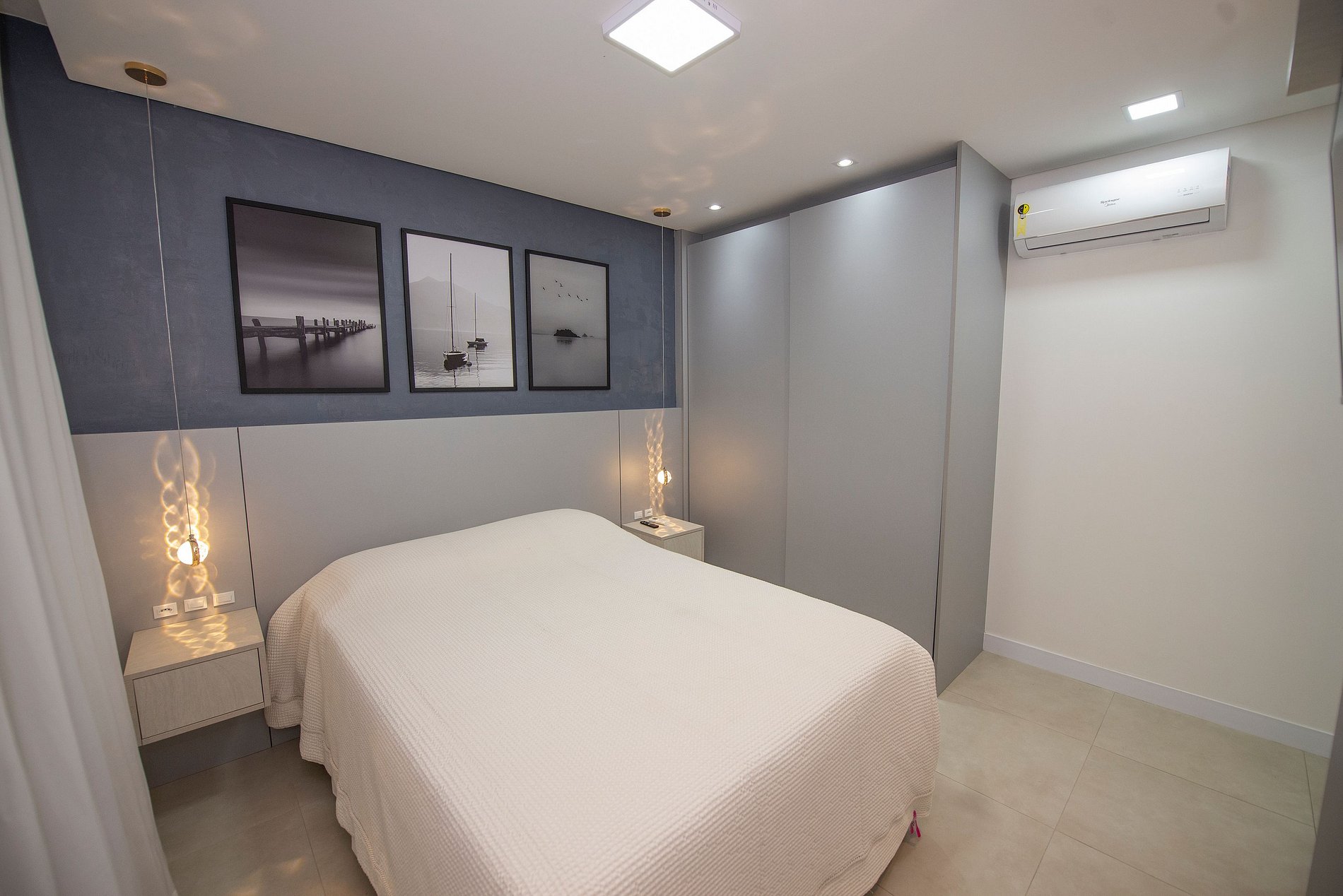 Suíte principal com cama Queen, mais duas suítes com camas de casal, todas muito confortáveis e equipadas com TV e Ar Condicionado.