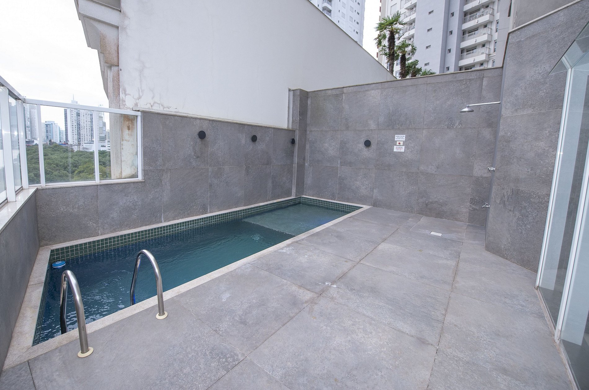 Na cobertura há uma piscina cujo acesso é liberado aos hóspedes.