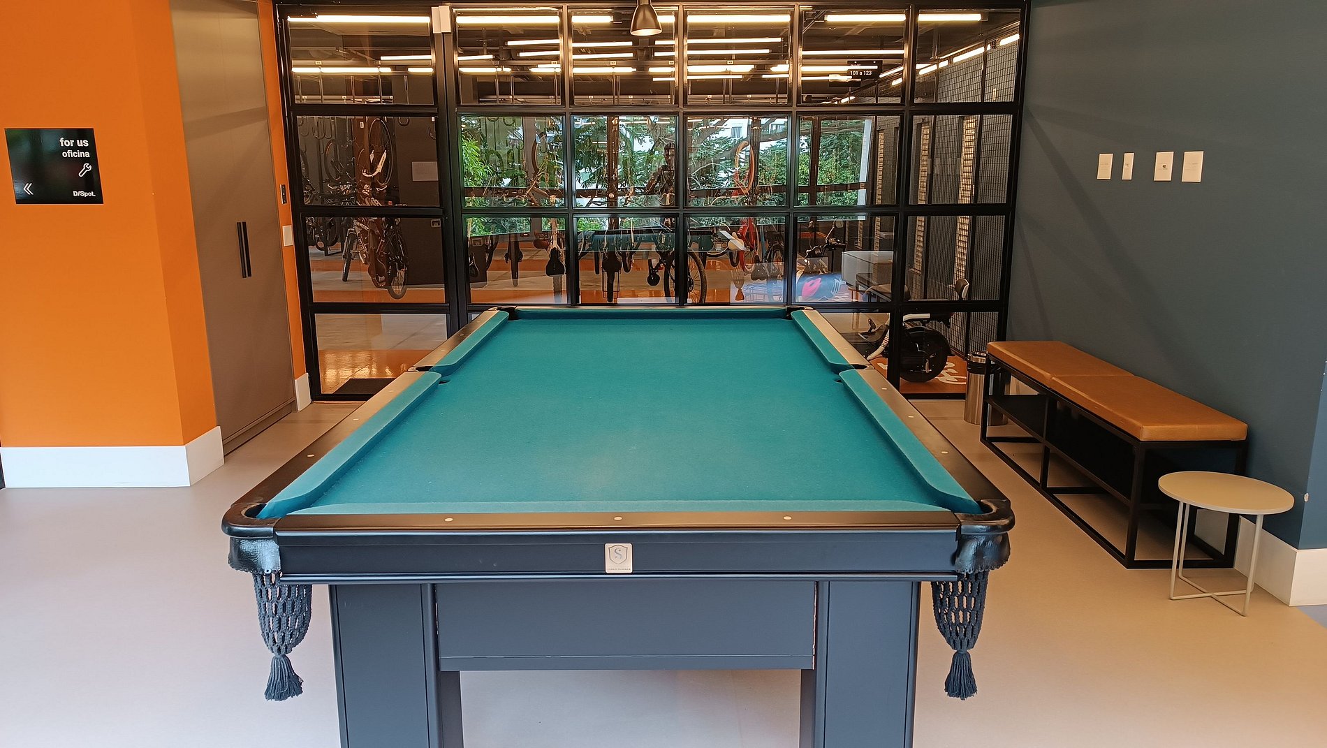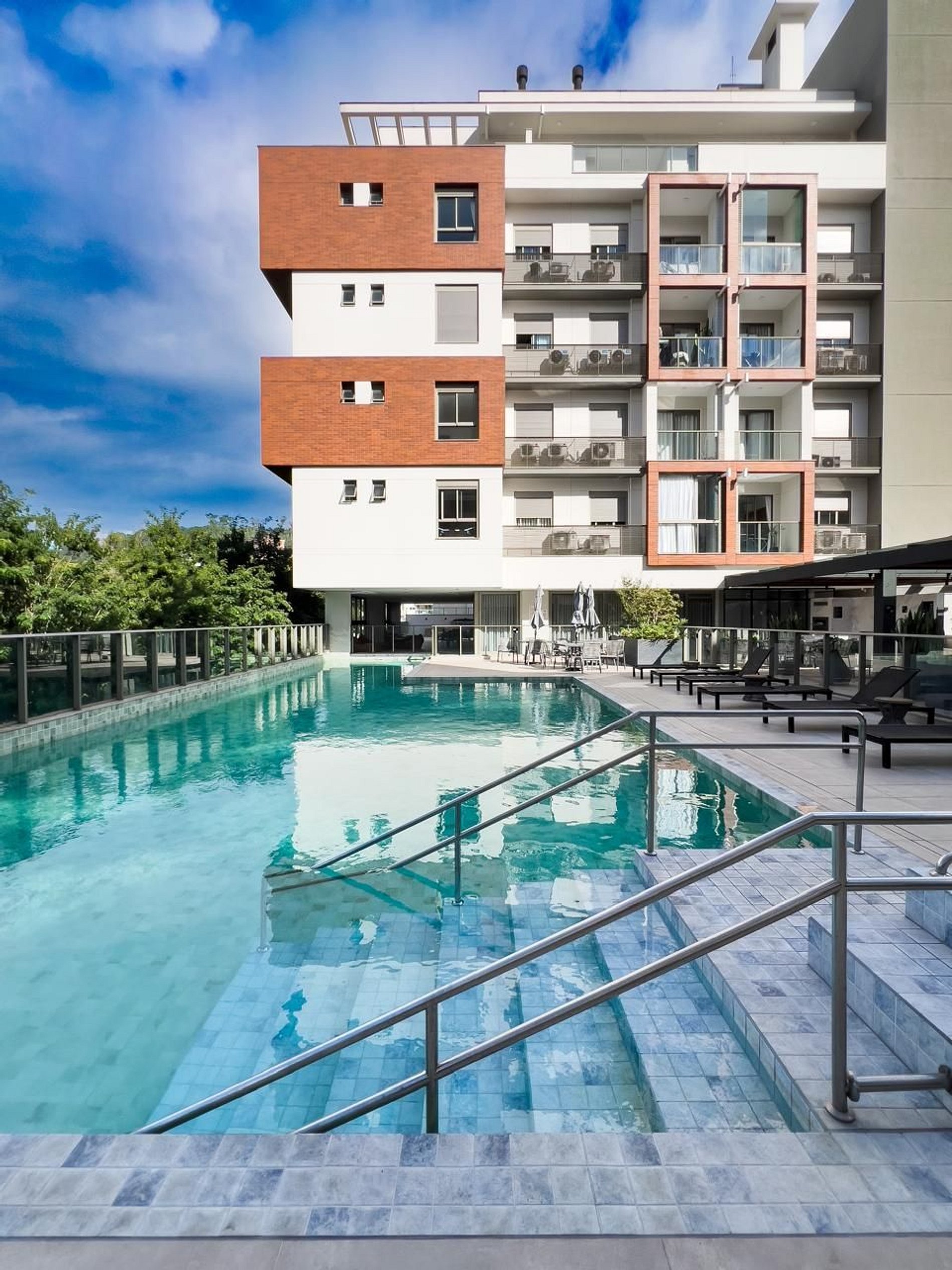 O condomínio oferece piscina aquecida, espaço grill (sob reserva), muitos locais para relaxar e uma área com lavanderia, café, cervejeira e até mesa de sinuca.
