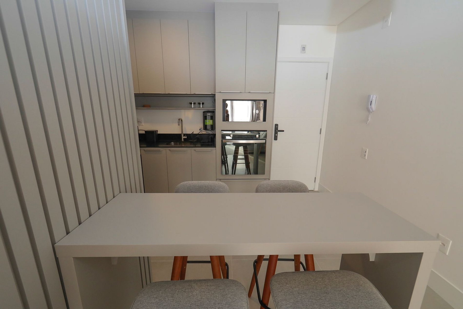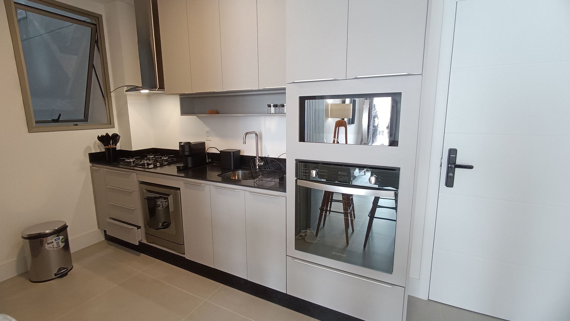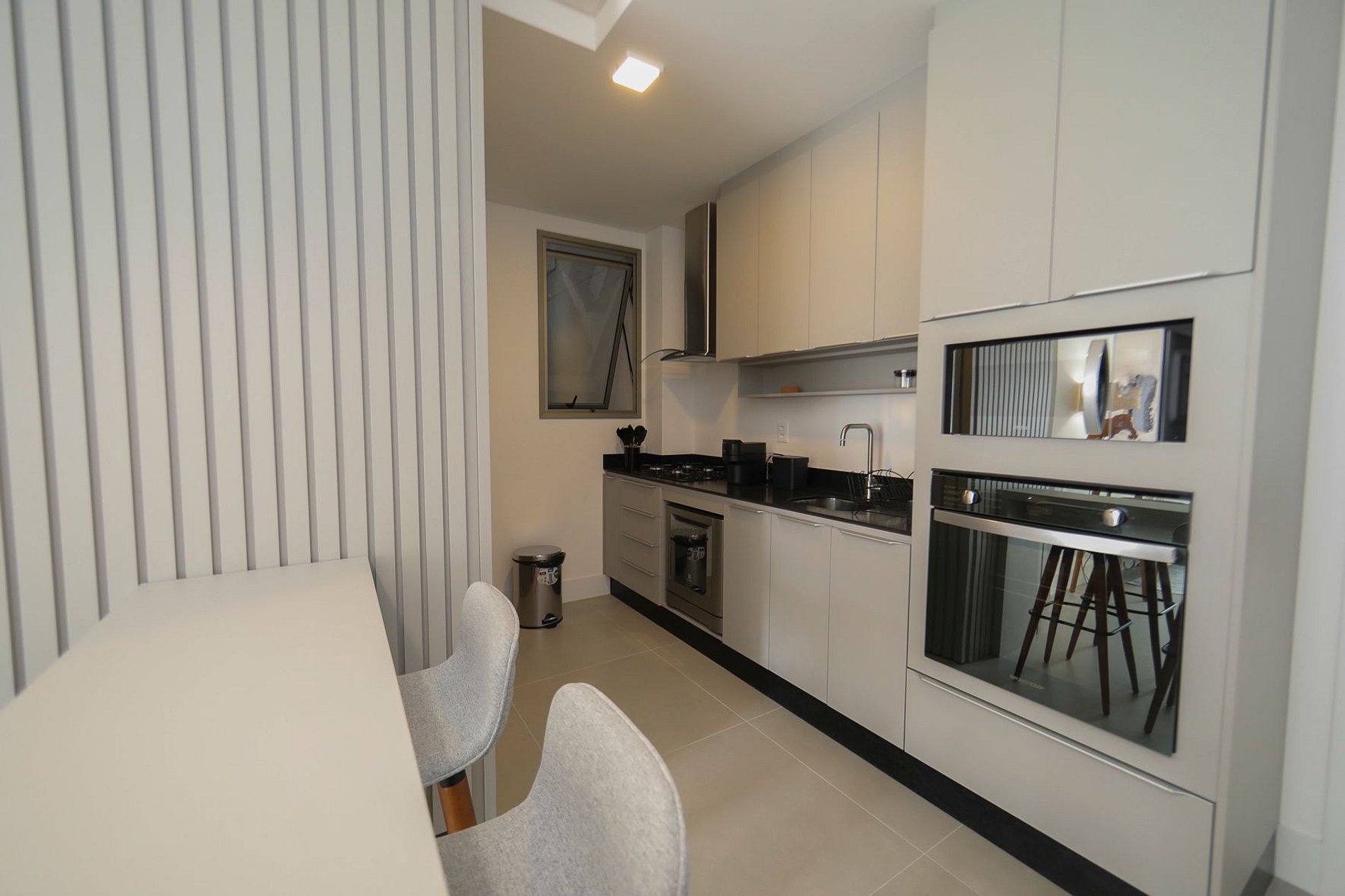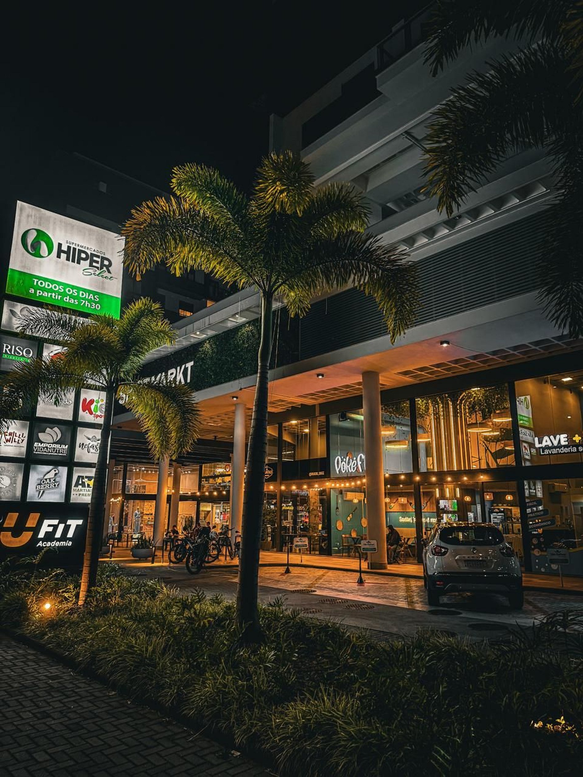 No térreo do condomínio há um Mall moderno com restaurantes, sushi, vinhos, cafeteria e outras opções, além de um supermercado logo em frente.