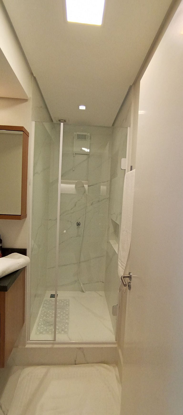 Para uma experiência ainda mais confortável, a acomodação conta com lençóis e toalhas de qualidade hotel Alto Padrão.