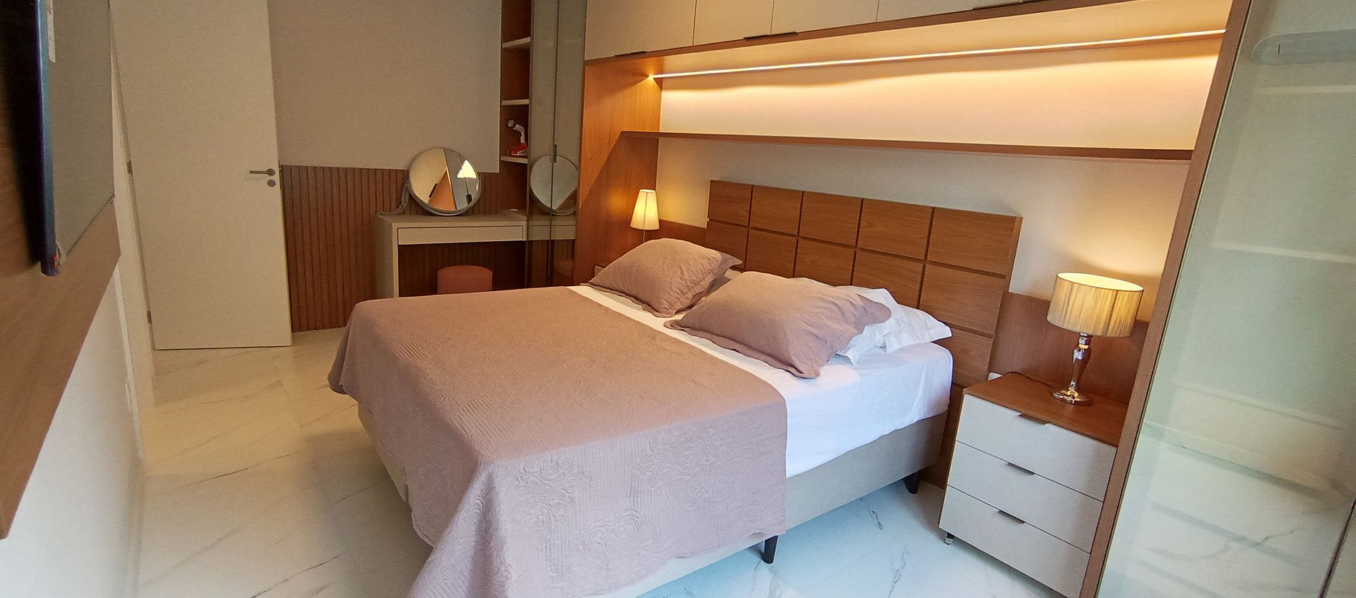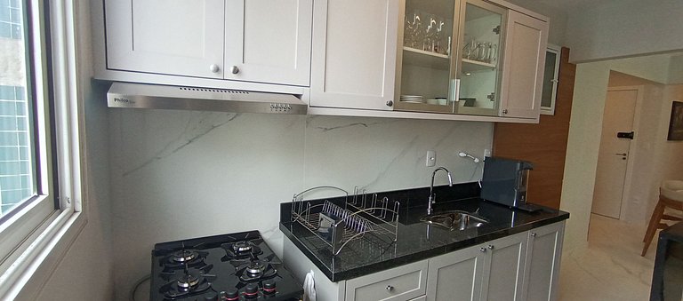 Apartamento recém reformado, Climatizado, com Wi-Fi, TV na sala e suítes, cafeteira, cozinha completa, lavanderia.