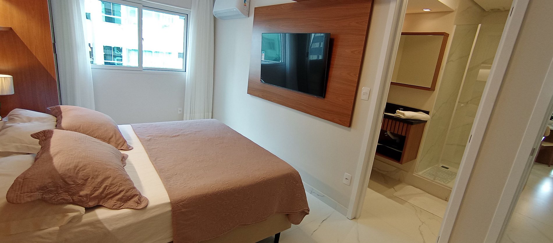 Apartamento recém reformado, Climatizado, com Wi-Fi, TV na sala e suítes, cafeteira, cozinha completa, lavanderia.