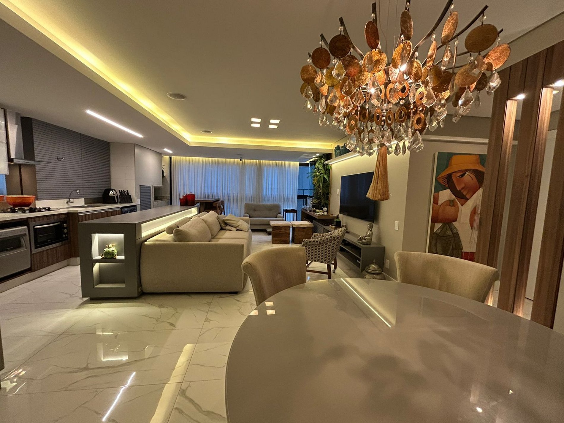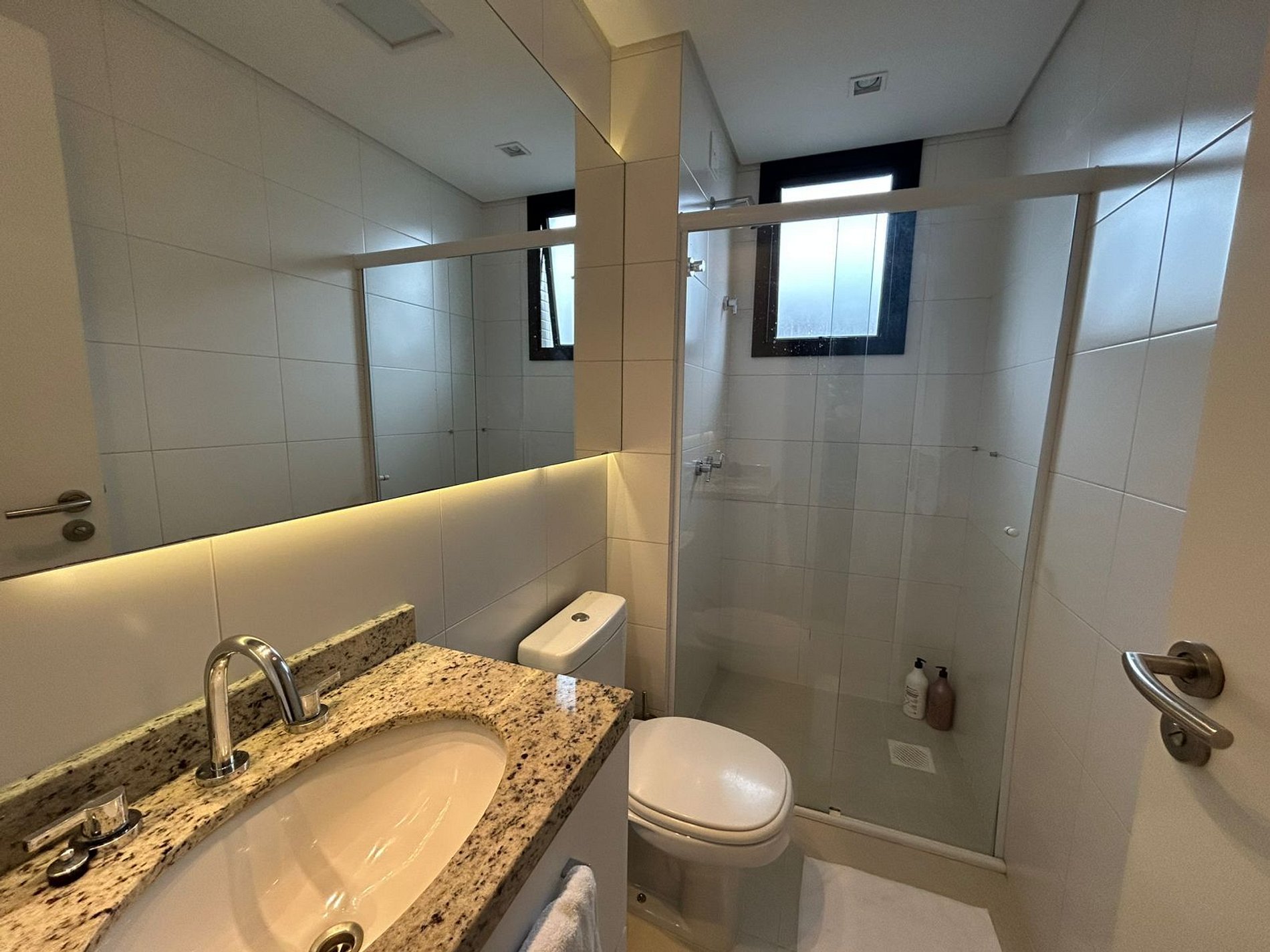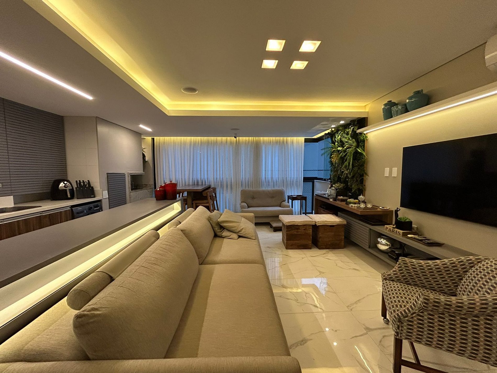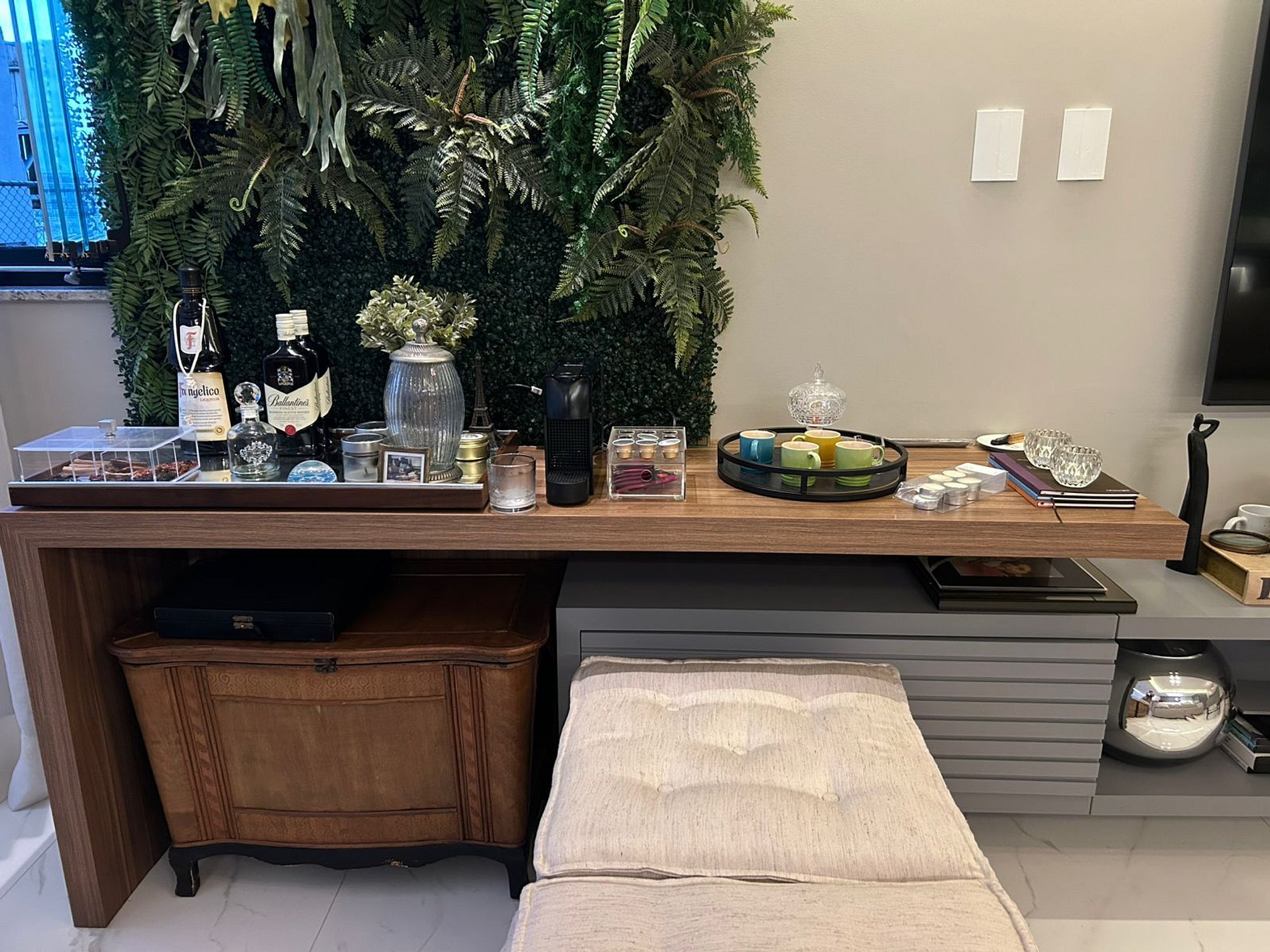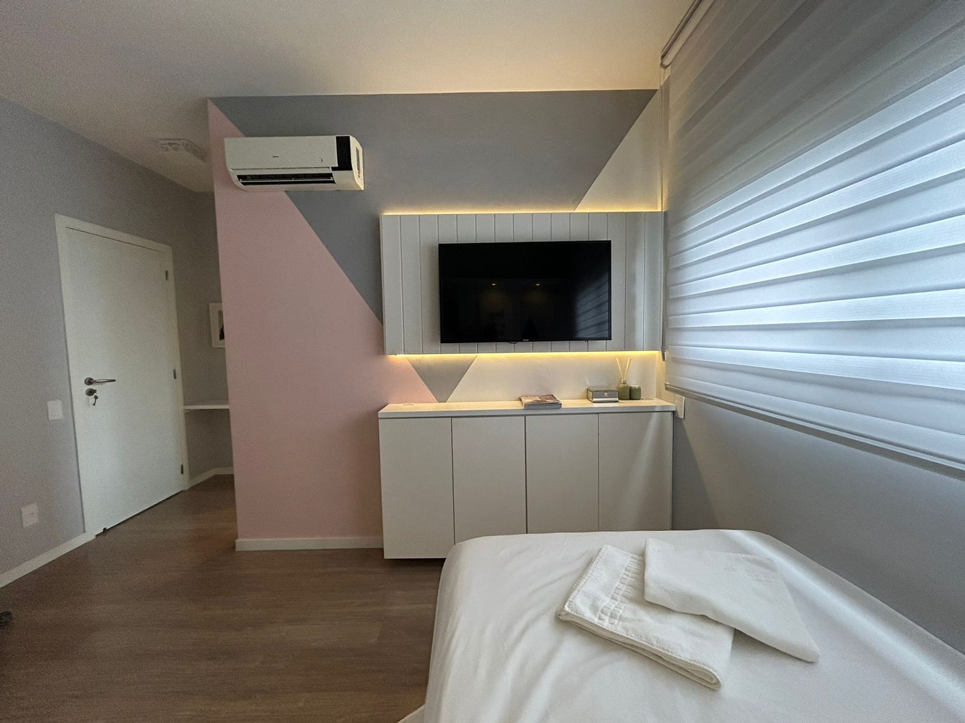 Apartamento com TV e Ar Condicionado na Sala e nas 2 Suítes, Churrasqueira, Lava louças, Máq. Lava e Seca, Equipamentos de cozinha, Bar e Cafeteira.