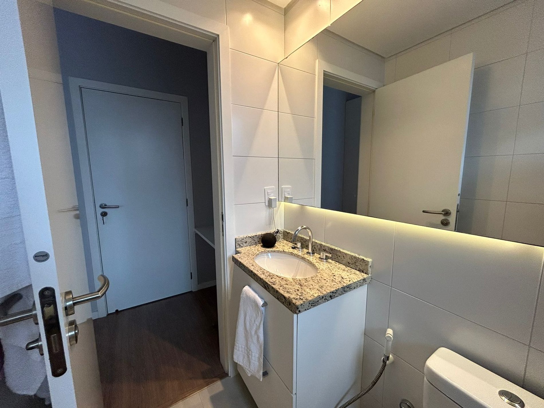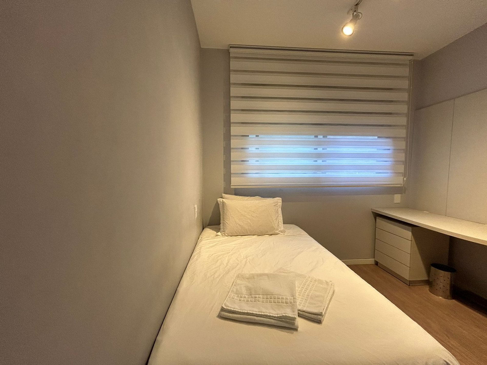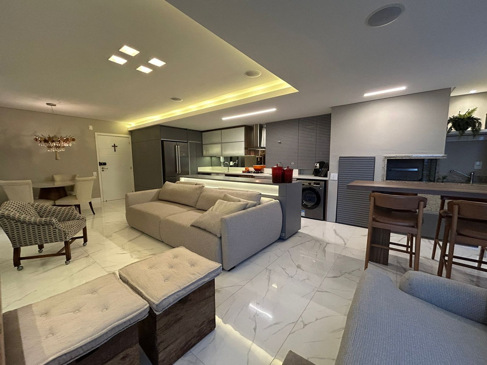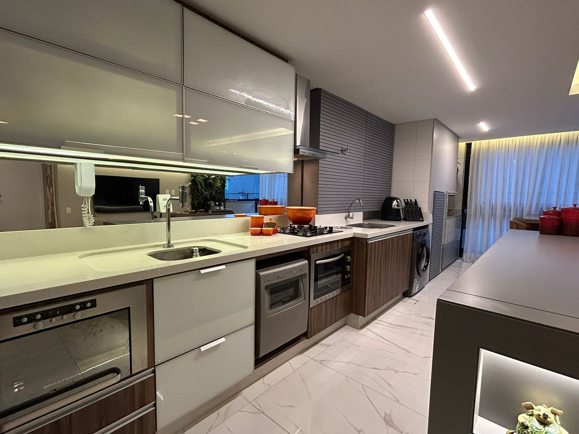 Apartamento com TV e Ar Condicionado na Sala e nas 2 Suítes, Churrasqueira, Lava louças, Máq. Lava e Seca, Equipamentos de cozinha, Bar e Cafeteira.